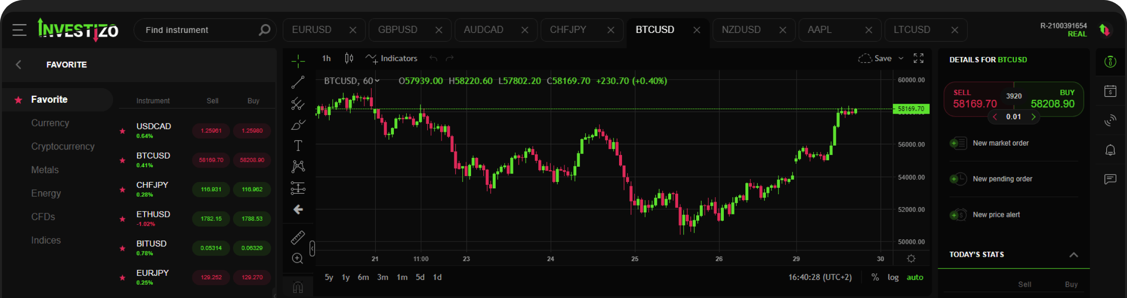 اینوستیزو انواع حساب ها را ارائه می کند: REAL ECN, REAL STANDARD با ارائه خدمات و شرایط معاملاتی با کیفیت تر.